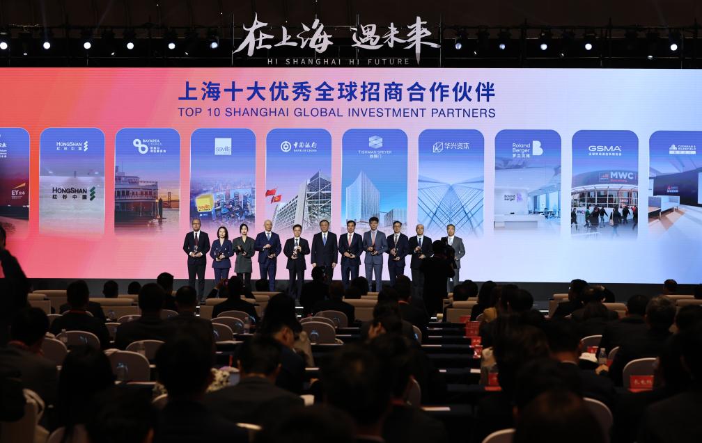 这是3月25日拍摄的“上海十大优秀全球招商合作伙伴”发布会现场。