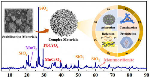 采用环境相容性好的硅基材料、铁基材料为基材,通过干法改性工艺实现材料表面活性官能团构建,避免了传统液相改性中耗水量大和药剂表面孔道结构塌陷烧结等问题。表面化学改性提高了材料在土壤或水体中的分散性和流动性,从而增强其稳定化效果。