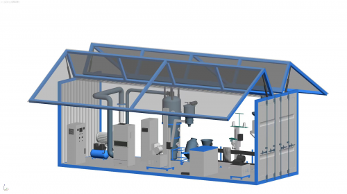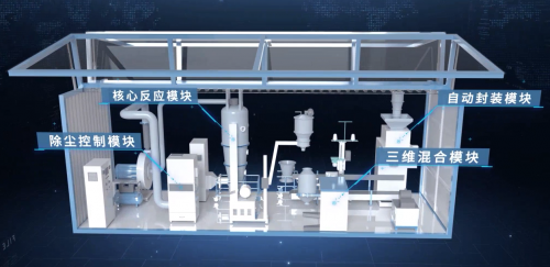 为批量生产所研发的高效广谱重金属稳定化材料,配套开发了一套定制化的移动式高效广谱重金属稳定化材料生产站。材料生产站能够实现对药剂材料进行表面化学官能团修饰改性、辅料任意配比混合、贮存、全自动封装产品的全套自动化工艺流程,配套包含定制化开发的专用软件系统,使全流程具备信息化管理能力。该生产站尺寸为3m×3m×8m,可移动工作位置,根据项目地点灵活布设,实现原料当地供应和药剂就地生产,改变传统的定址生产供货模式,降低物流成本,提高响应速度。