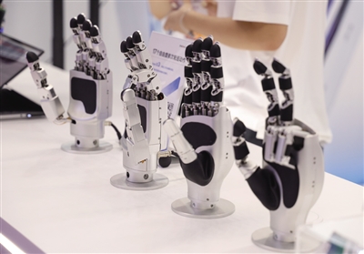 首届机器人全产业链接会上展出的灵巧手