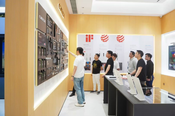在CMECH希美克高层管理团队及相关负责人的陪同下,江苏省门窗协会代表团首先参观了企业展厅。展厅通过详实的资料与生动的展陈,系统呈现了CMECH希美克深厚的发展历程、核心技术创新成果以及覆盖建筑门窗全场景的多元化高精度五金产品体系。丰富的系统化解决方案,生动展示了CMECH希美克如何通过技术创新驱动门窗性能优化与用户体验升级。