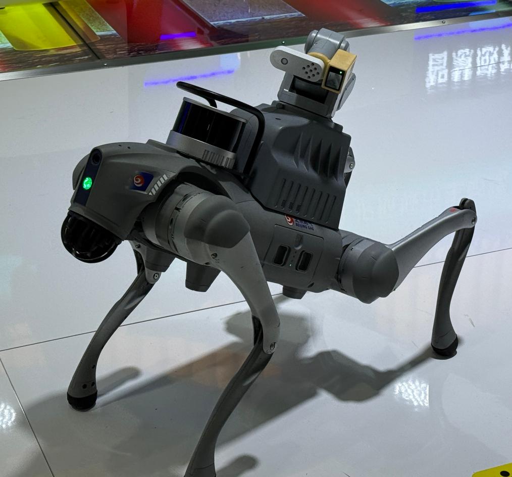 在2025年中国国际服务贸易交易会现场,燃气巡检智能机器狗在进行展示。