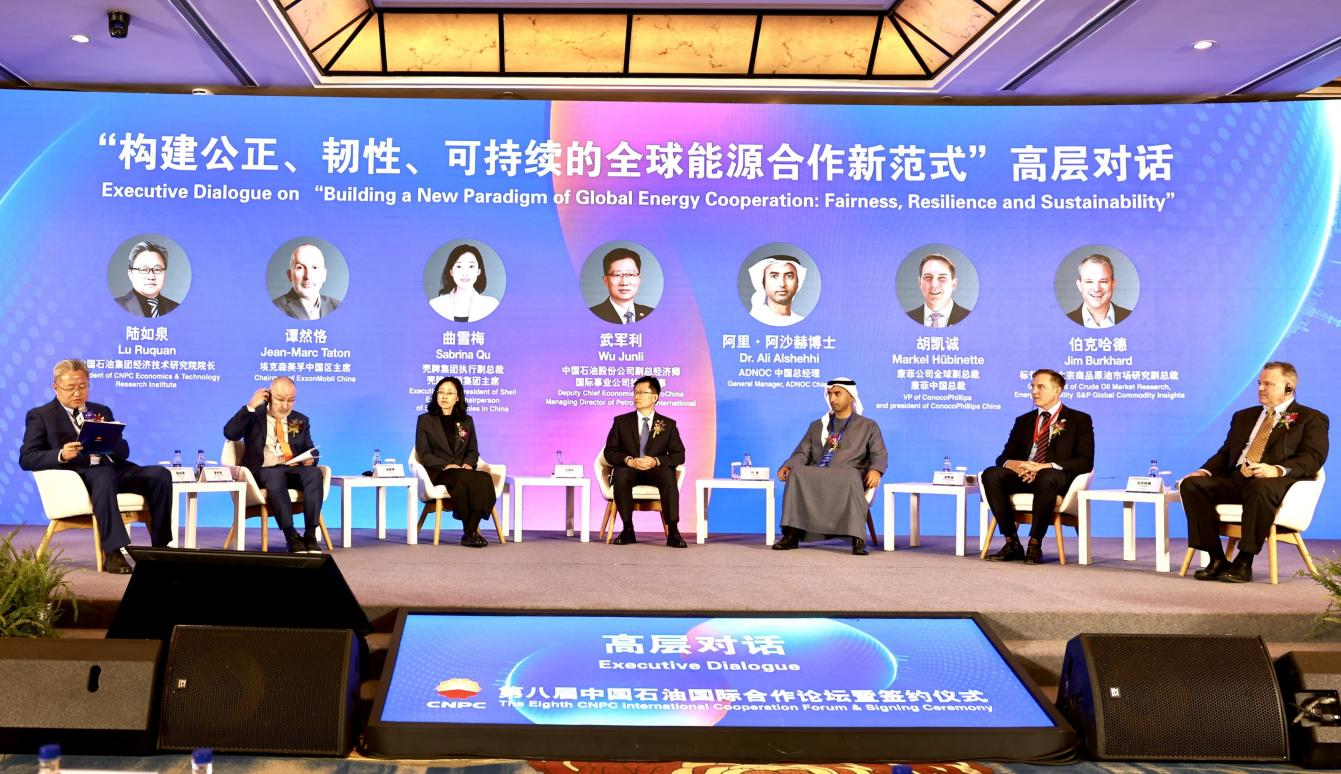 论坛还举办了高层对话环节,中国石油与来自壳牌集团、埃克森美孚、康菲、阿布扎比国家石油公司、标普全球等全球顶尖能源企业的领军者与资深业界专家,围绕“能源公正转型”“能源供应链韧性”“能源发展新动能”三大议题,通过开放的数据、丰富的案例和思想的碰撞,凝聚智慧与共识,谋求为全球能源合作的新范式找到最大公约数。