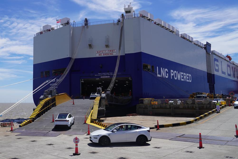 上海南港码头,风电发电机组的叶片、太阳能电池组件整齐堆放,工作人员忙着进行最后的检测调试,一批批清洁能源装备正从这里走向全球市场。