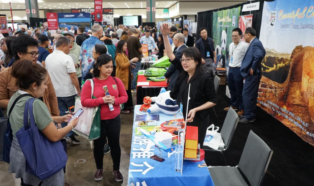 2月22日,人们在美国洛杉矶旅游展上参观中国展台。