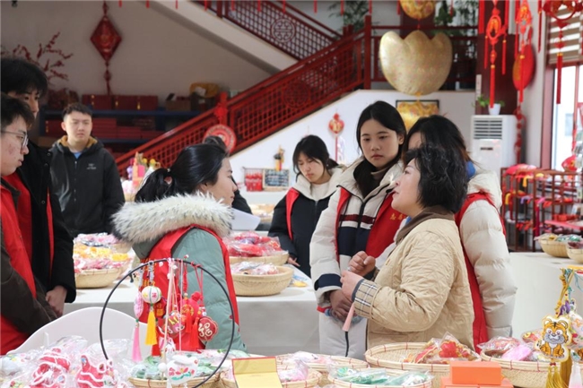 马庄村村委会主任、党委副书记王霞向我们介绍了潘安湖的改造和马庄村的发展。王霞主任说道:“从前的马庄村及贾汪区曾以煤矿产业为主,环境恶劣,人民的生活艰苦,生活质量较低。‘白衬衫上午去黑衬衫下午回’是当时的普遍现象,反映了当时贾汪区的环境污染严重。后经过区政府的积极引导,煤矿塌陷地得以改造,潘安湖国家湿地公园逐渐建立,环境质量也随之改善。”同时以孟庆喜书记为代表的村支书们稳进推进马庄村的各项工作,坚持坚持文化立村、文化兴村,结合文化与农业,流转 3000 多亩村民土地发展农副产品,提高农民收入附加值。马庄的香包便成为了特色的支柱产业,王霞主任还向我们展示香包的制作和特点,让我们更加深入地了解了马庄香包的魅力和马庄村发展的力量。