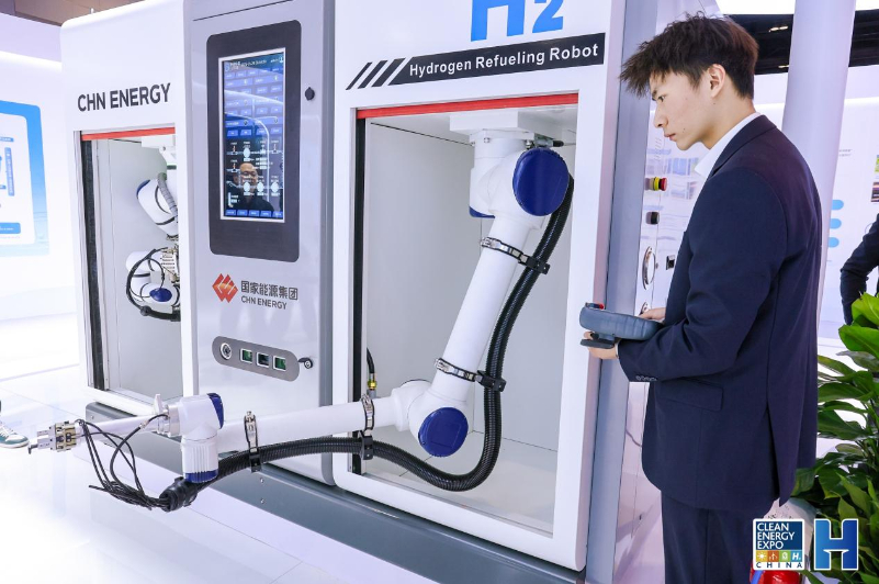 展会首日,国家能源集团专门设立“氢能技术开放日”展区,以全面展示其在氢能领域的发展规划与布局,并展出多项科技创新成果。其中“一体化智能加氢机器人”“5MW级碱性电解水制氢综合测试平台”等拳头产品均为首次公开亮相。