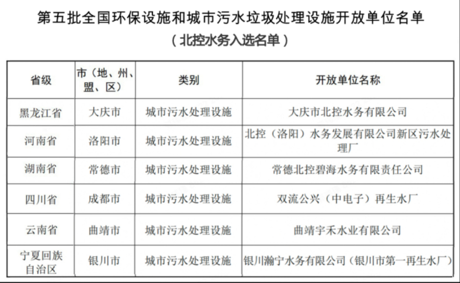 北控水务6座水厂入选第五批全国环保设施开放单位名单