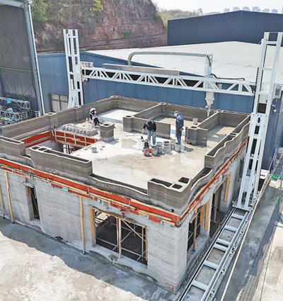 “这栋小楼高8米,占地100平方米,从3月初开始打印到封顶,一共用时22天,只需3名工人。”该项目技术负责人、三峡大学水利与环境学院副教授李洋波介绍。