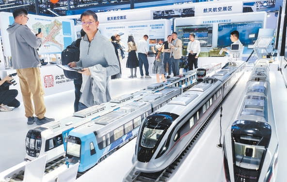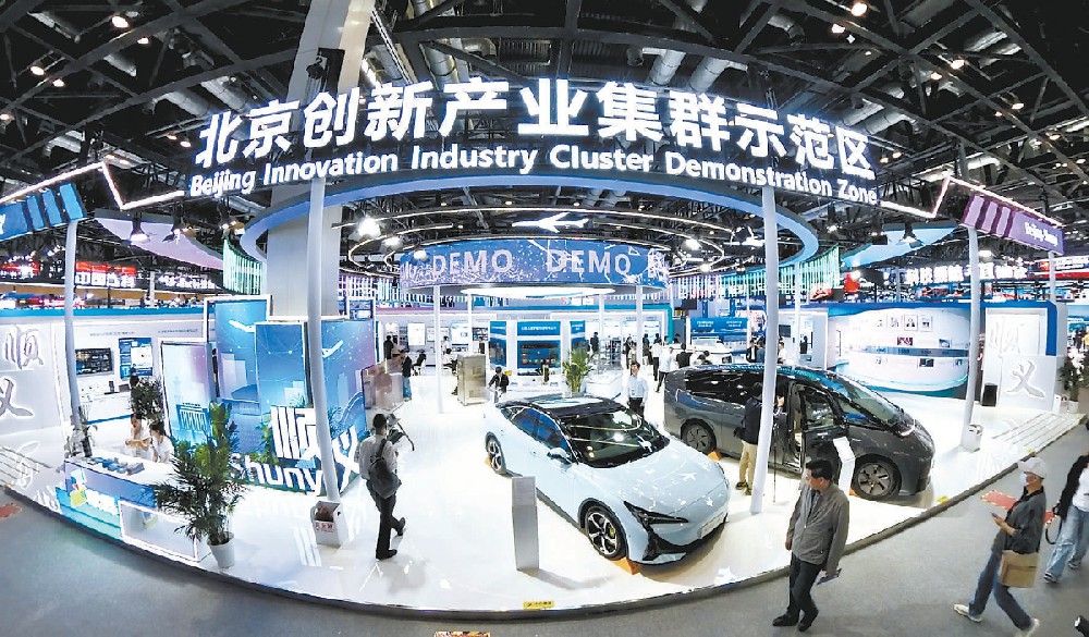 昨天,观众在北京创新产业集群示范区(顺义)展区参观。
