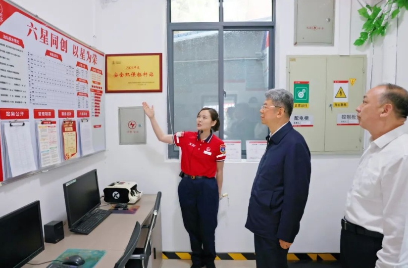 在加能站办公区经营管理看板前,“六星同创 以星为荣”八个大字引起了马永生的关注。了解到湖北石油正在大力开展以“红心献给党、爱心献给社会、忠心献给企业、匠心献给工作、诚心献给客户、信心献给自己”为主要内容的“六星同创”工作。马永生详细询问玉带门加能站站经理汪天虎,“如何评星?不同星级员工的区别?”。了解到湖北石油推动党建引领在基层治理中发挥重要作用,制定“六星同创”工作业绩评价体系,建立“多评星、多挣薪”的激励机制,有力激发了一线员工的动力活力,马永生对湖北石油积极推动基层党建工作创新和实践表示充分肯定,要求进一步加大“六星同创”的探索力度,成为可复制、可推广的创新成果。