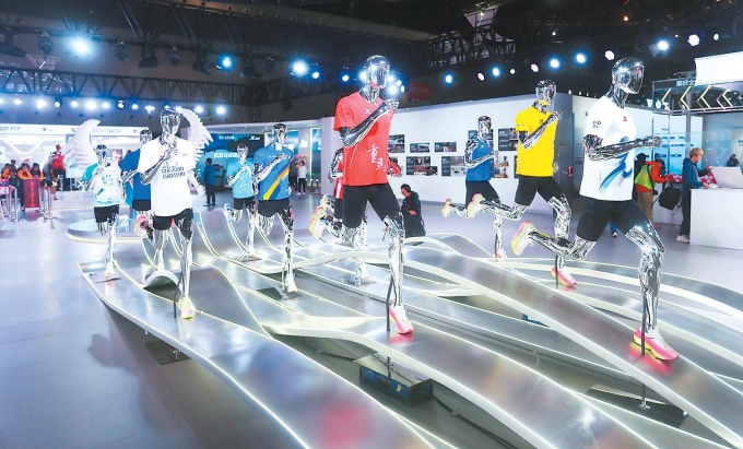 随着人们对健康生活方式的追求,跑鞋的需求量不断增加。图为某球鞋品牌展示其生产的新款跑鞋。