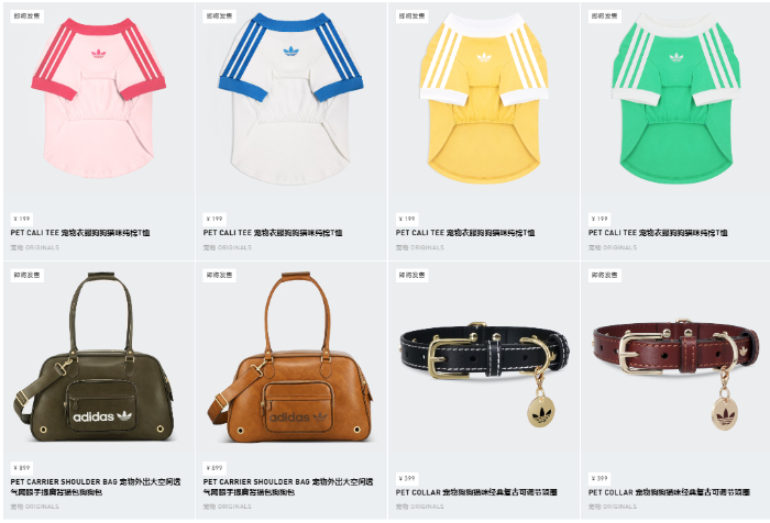 阿迪达斯官网显示,此次发布的三叶草宠物系列产品将于5月27日10点在线上官方渠道发售。从产品价格来看,缤纷活力的四色T恤售价为199元/件,三叶草金属吊坠项圈售价为399元/件,两款复古手提肩背包售价为899元/件,与店内成人服饰、背包价格相当。可以看出,该系列宠物产品主要面向追求高品质的时尚宠主。