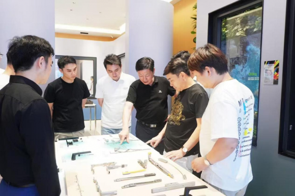 在CMECH希美克高层管理团队及相关负责人的陪同下,江苏省门窗协会代表团首先参观了企业展厅。展厅通过详实的资料与生动的展陈,系统呈现了CMECH希美克深厚的发展历程、核心技术创新成果以及覆盖建筑门窗全场景的多元化高精度五金产品体系。丰富的系统化解决方案,生动展示了CMECH希美克如何通过技术创新驱动门窗性能优化与用户体验升级。
