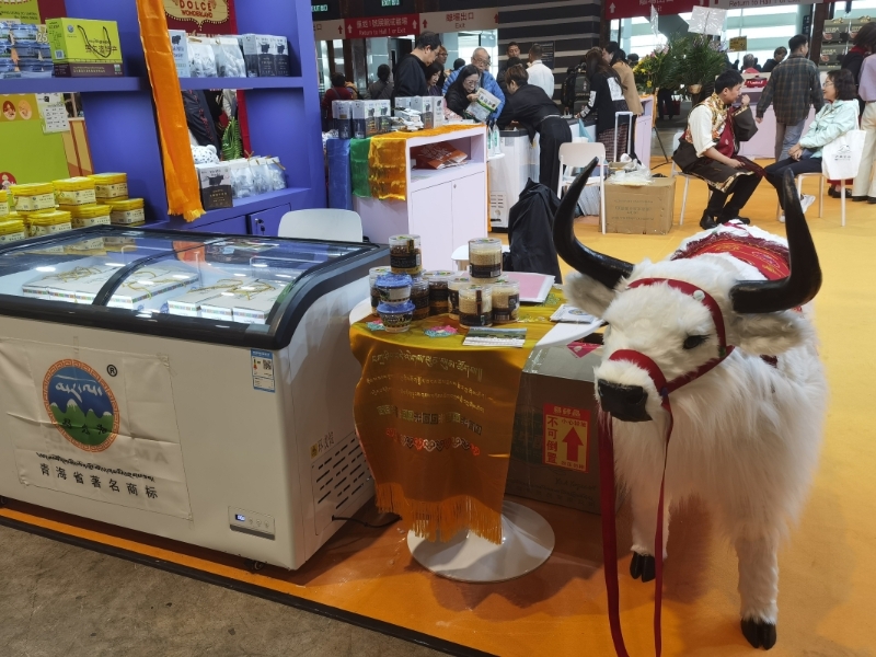 今年美食节展会中出现不同身影。有记者发现,场内设置了“大美青海”主题摊位,带来了内地青海省玛沁县等地的当地特色产品,引得不少观众驻足询问。